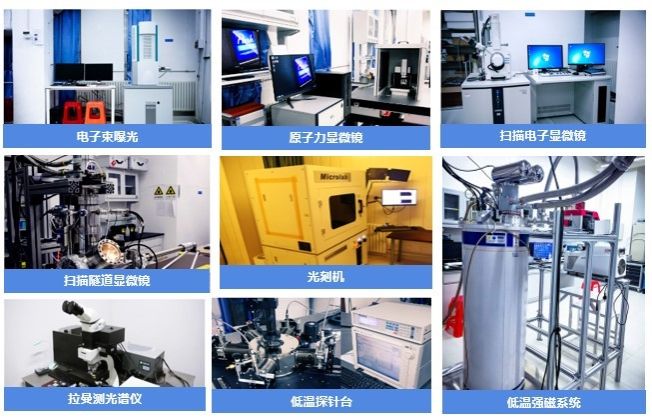纳米中心科研设备总量超300台套。其中包括低温扫描隧道显微镜、扫描电子显微镜、原子力显微镜系统、电子束及热蒸发金属蒸镀系统、原子层沉积系统、化学反应离子刻蚀系统、激光直写系统、Nanonics低温集成加工及探针系统、Nanonics环境集成探针系统、低温强磁系统、低温探针台、双泵浦飞秒激光、可变频纳秒激光、深紫外准分子激光、气相色谱质谱联用、基于电子显微镜的电子束曝光系统等大型设备,以及包括气相色谱、低能电子衍射仪、半导体性能测试仪、网络分析仪、超高灵敏度电容电桥、半导体超声键合机、开放空间探针台、纳米级石英探针拉针仪、电化学工作站、紫外可见分光光度计、手套箱、高功率感应加热系统、CVD管式加热系统、无液氦超低温冷头、超硬材料磨抛机、金刚石线切割机、X射线晶体定向仪、光学显微镜、宽频带高速示波器、锁相放大器、精密高压电源、以及各种用于电输运性质测量用的仪表、电流电压放大器等等。