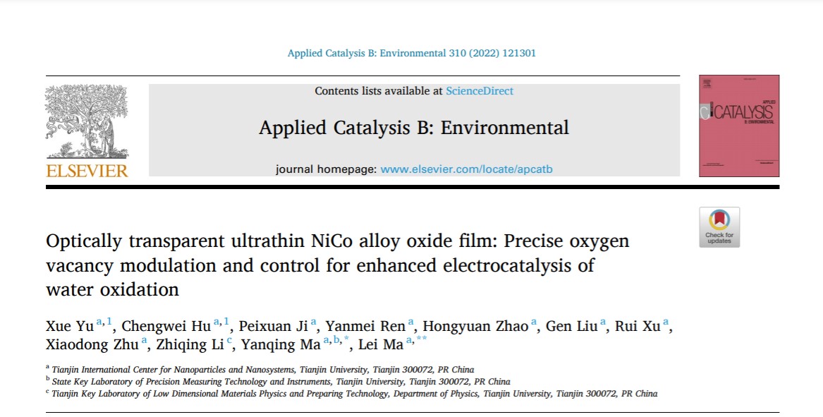 亮点1:本论文通过电子束蒸发合金及紫外臭氧氧化方法制备了厚度仅10nm、光学透明的NiCo合金氧化物薄膜催化剂,该方法可以实现一定范围内的大面积、任意形状的催化剂薄膜电极制备。