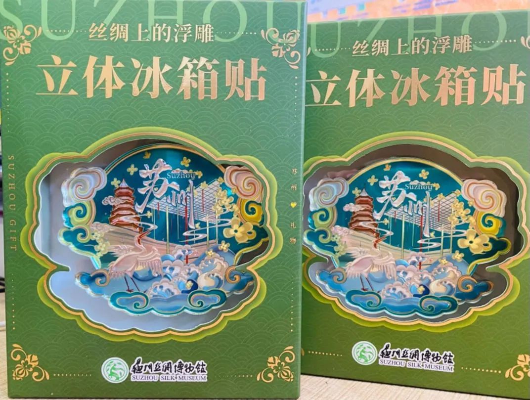 精美礼品:苏大维格光刻机和苏州丝绸博物馆联合开发的产品 “丝绸上的浮雕”立体冰箱贴