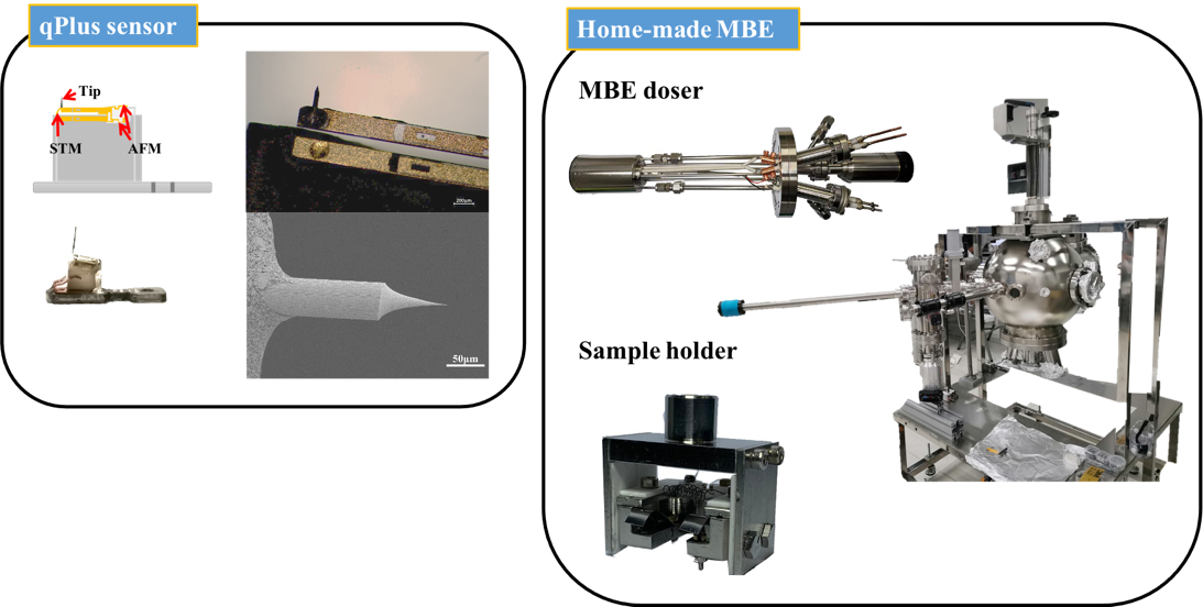 The research content includes the preparation of the tip of SPM based on qPlus technology, the corrosion condition of tungsten tip and the effect of qPlus sensor added mass on Q value are systematically studied. By using the self-designed tip, the function of AFM and STM can be combined, which multi-channel signal detection can be carried out for samples with different electrical properties to obtain more information of the material.