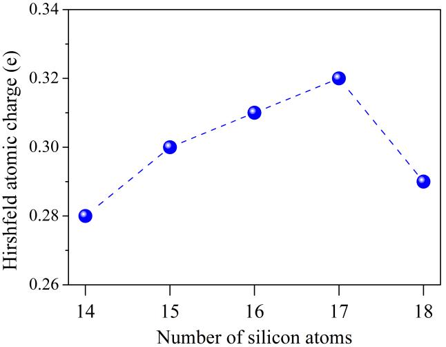 图6. CrSinˉ(n=14-18)团簇中Cr原子上的电荷分布。