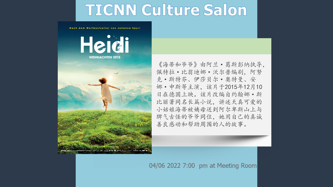 阿尔卑斯山令人心醉的蓝天白云成为了《海蒂和爷爷》唯美的基色,而对人物情感细腻的勾勒,透过一老一少故事的展开,并没有用刻意的矛盾与冲突来营造剧情张力,仅是凭日常生活中一件件小事的串联,不仅让海蒂和爷爷之间醇厚深刻的感情酝酿升华,更突显着这一圣洁之地生活的人们内心的美好,这是一部仿若童话般的电影,它让人收获的不仅是那至美的风景,还有着源于生活温馨幸福的真善之美。本次文化沙龙将于今晚(6.4)19:00在四楼会议室为大家带来电影放映《海蒂和爷爷》。并且为大家准备了精品小零食,希望感兴趣的同学积极参加。