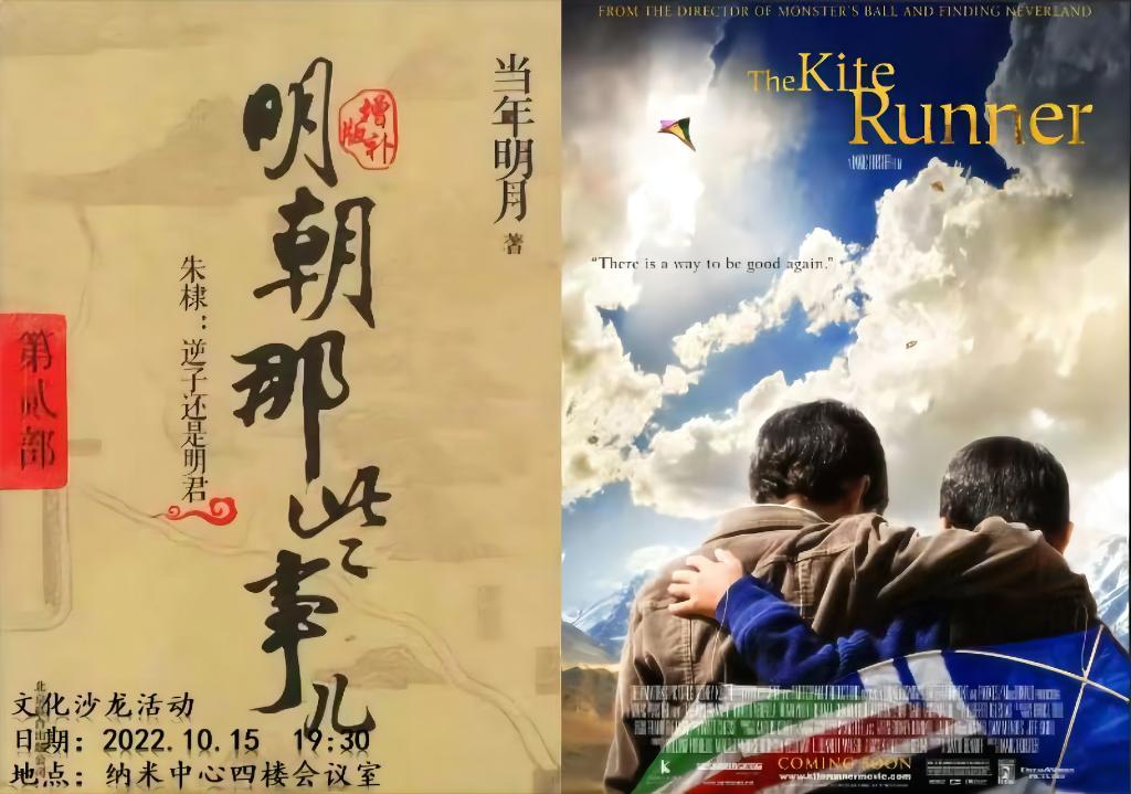 本期文化沙龙为大家简单介绍《明朝那些事儿》和《追风筝的人》两部书。《明朝那些事儿》主要讲述的是从1344年到1644年这三百年间关于明朝的一些事情,以史料为基础,以年代和具体人物为主线,并加入了小说的笔法,对明朝十七帝和其他王公权贵和小人物的命运进行全景展示,尤其对官场政治、战争、帝王心术着墨最多,并加入对当时政治经济制度、人伦道德的演义。《追风筝的人》它讲述了关于爱、救赎、伤害与背叛。“曾经那个愿为我千千万万次捡风筝的人已经逝去,人生中错过了就不会再得到,也许我们会忏悔,会救赎,但这些似乎都已经晚了。每当放飞风筝的那一刻,我们应该问问自己我们是否真正珍惜过我们所拥有的一切。”